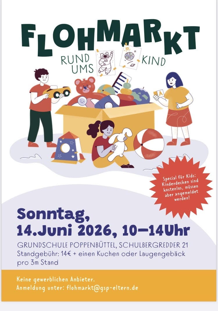 Es ist wieder so weit! Ob zu klein gewordene Lieblingsstücke, Spielzeug, das ein neues Zuhause sucht, oder Fahrwerk aller Art – bei unserem Flohmarkt findet alles seinen Platz. Download Poster